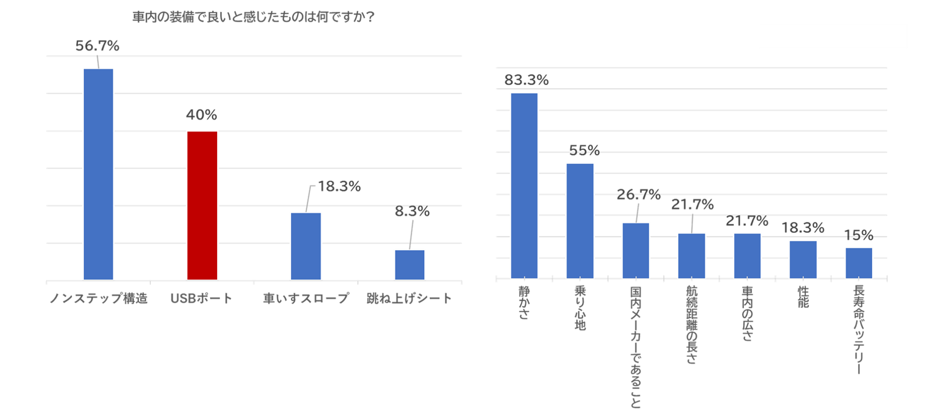 ・試乗いただいた大多数のお客様に、静かさ・快適性・加減速を評価いただきました。