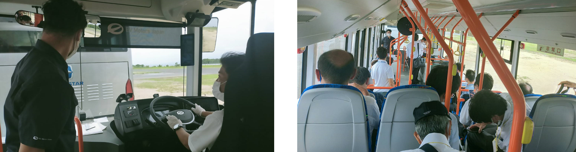 大型EV路線バスの試運転は事前に抽選を行っております。当日、当選した20名の方に運転指導を行い、実際にテストコースを運転していただきました。試乗体験は計20回運行し、合計約400名のお客様に当社の大型EV路線バスの乗り心地を体感していただきました!