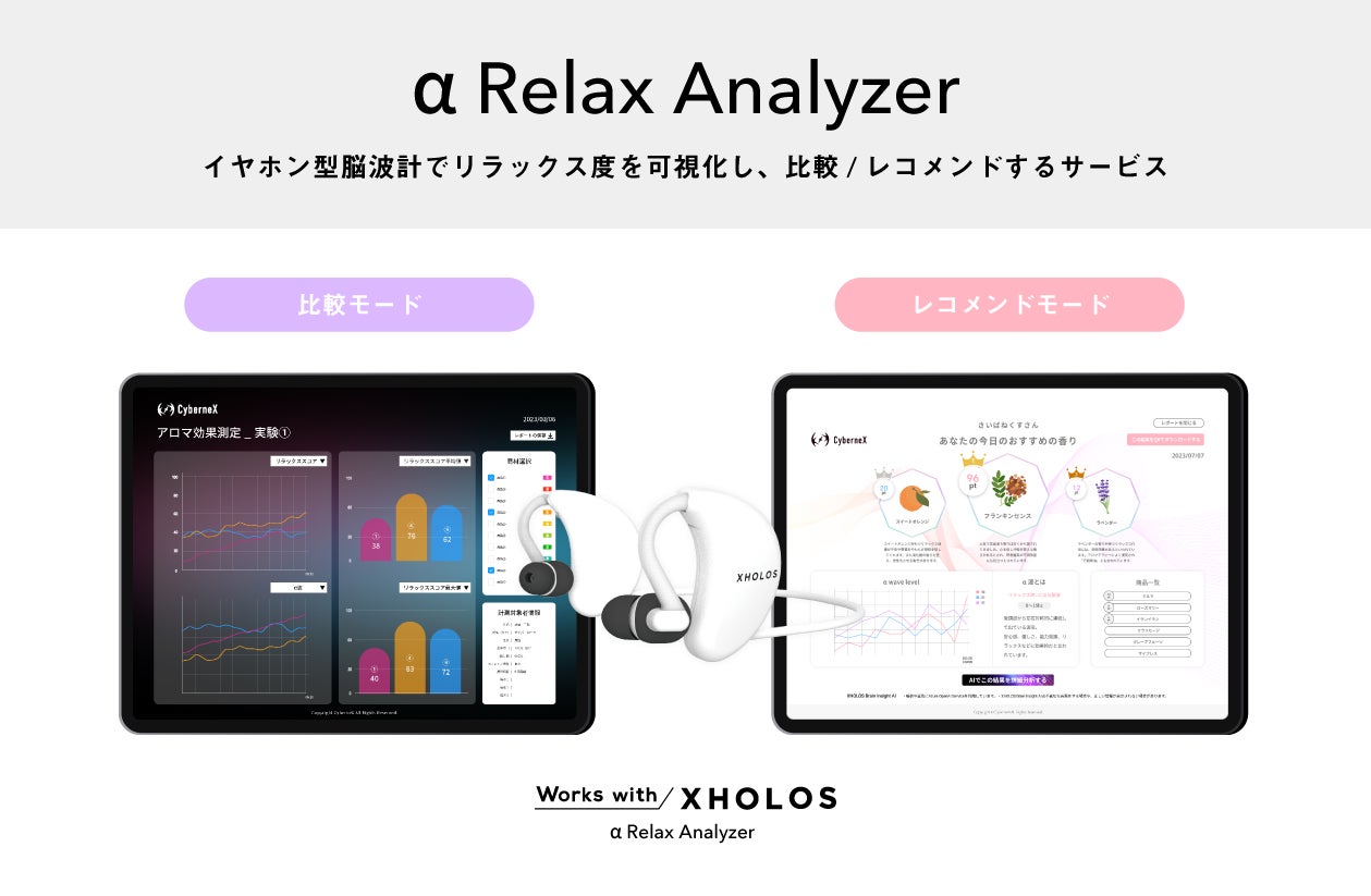 CyberneXが提供するα Relax AnalyzerはXHOLOS Ear Brain Interfaceと組み合わせて、誰でも簡単に脳情報を使ってリラックス度を計測することが出来るアプリケーションです。