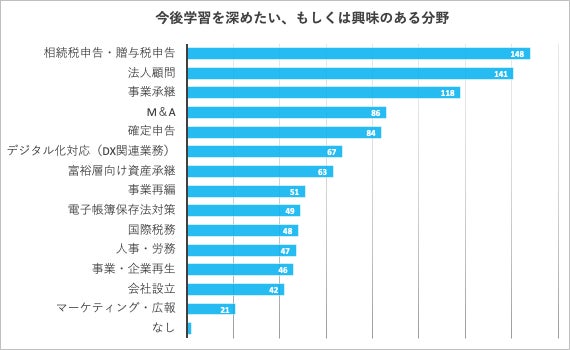 ・学習したい分野の1位は「相続税・贈与税」続いて、「法人顧問」「事業継承」など