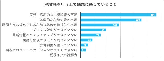 多くが基礎的・実践的な税務知識や、税務以外の価値提供に課題をもっている