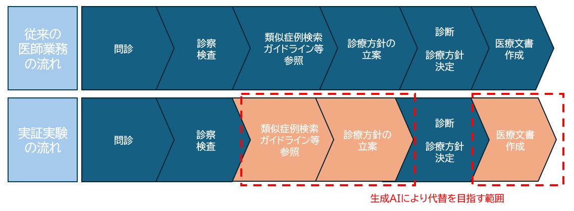 こうした状況を踏まえ、本共同研究では、生成AIの「RAG(検索拡張生成)」や今後の活用が期待されている「マルチエージェント(自律エージェント)」を使用して、医療ガイドラインや電子カルテの情報を基に、診療計画の立案や指示内容の入力、医療文書作成など医療業務を補助する分野での活用可能性を2025年3月までに検証、効率的な診療環境を実現し、医師の負担軽減を目指します。