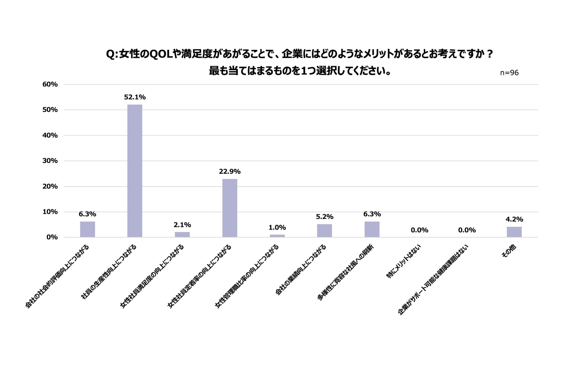 今回の調査を通じて、多くの企業が、女性の健康課題に対する支援が企業の生産性向上や社員満足度の向上に直結すると認識しており、その重要性を理解した上で、さらなる推進に前向きな姿勢を示していることが確認されました。
