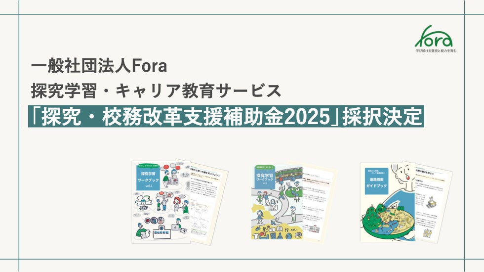 一般社団法人Fora(所在地:東京都中央区 代表理事:藤村 琢己、以下Fora)は、経済産業省・教育産業室が実施する「探究・校務改革支援補助金2025」に採択されたことをお知らせします。