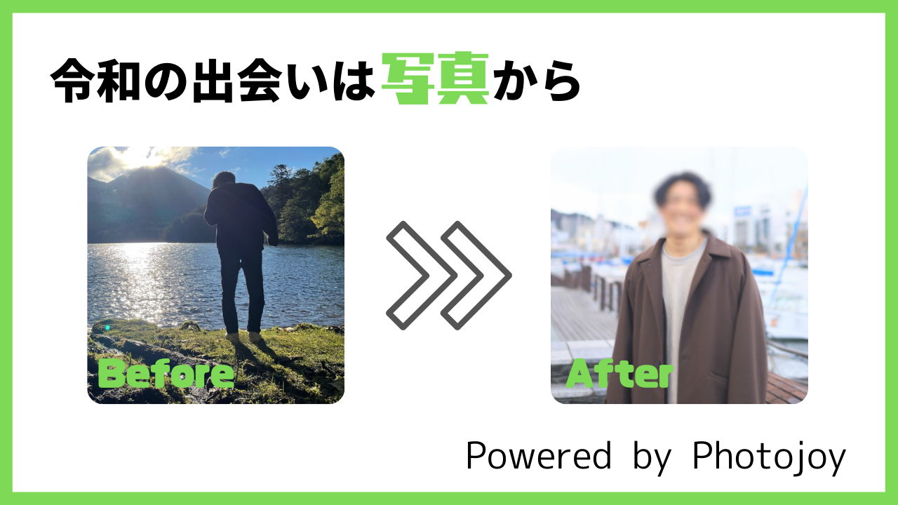 自分自身もマッチングアプリユーザーでしたが、相手に自分の魅力を伝えられるような、自信を持てる写真はなかなか手元にないものです。このような思いを持つ人々の悩みを解決したいと考え「Photojoy」の提供を開始しました。