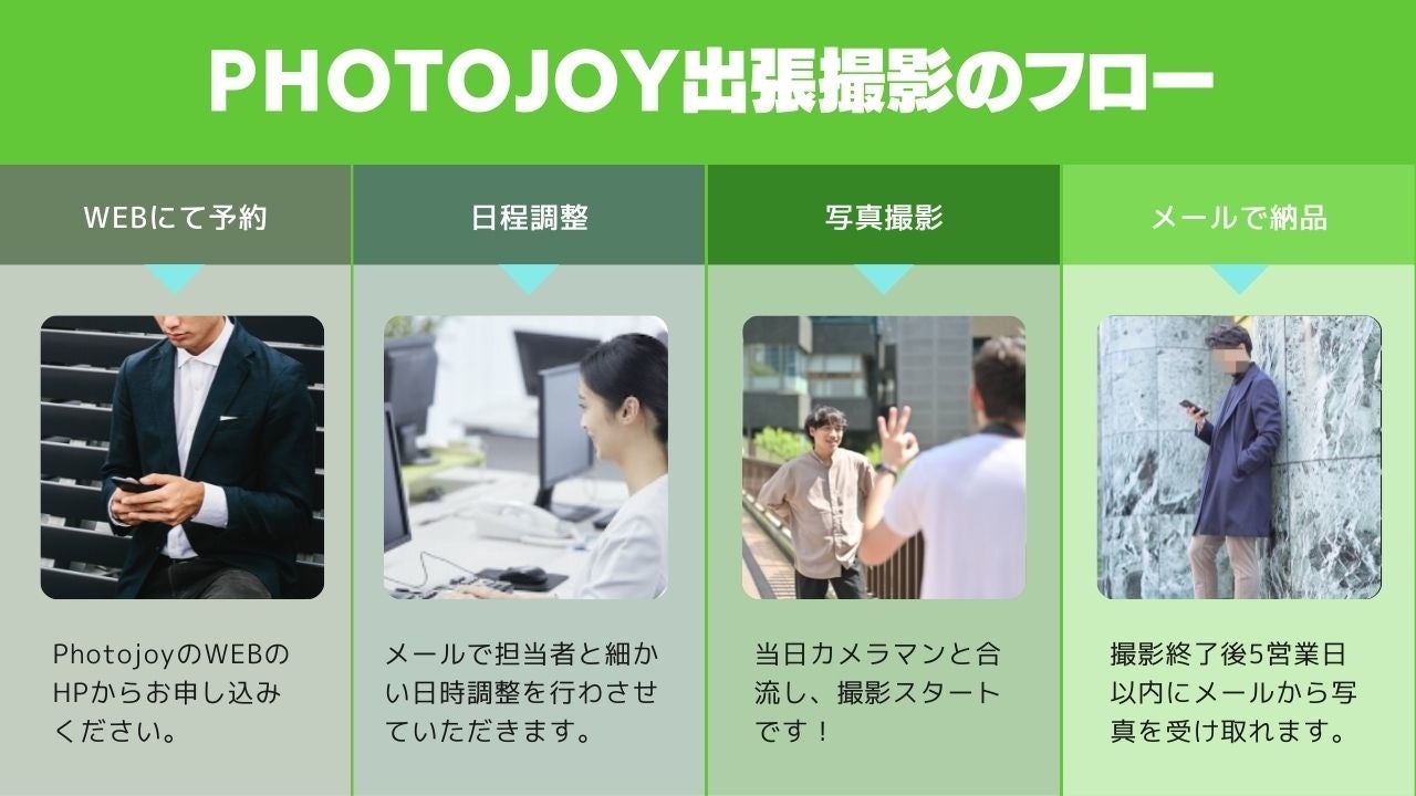 「Photojoy」は恋活・婚活の プロフィール写真に特化した出張撮影サービスです。全国47都道府県に撮影エリアを展開しており、マッチングアプリ写真の撮影研修を受けた登録カメラマンが出張し、厳選した撮影スポットでそれぞれの魅力を引き出す写真を撮影いたします。またプロフィール写真の撮影だけでなく、ファッションのコーディネートやプロフィール文の作成などトータルで恋活・婚活をサポートするプランも提供しています。