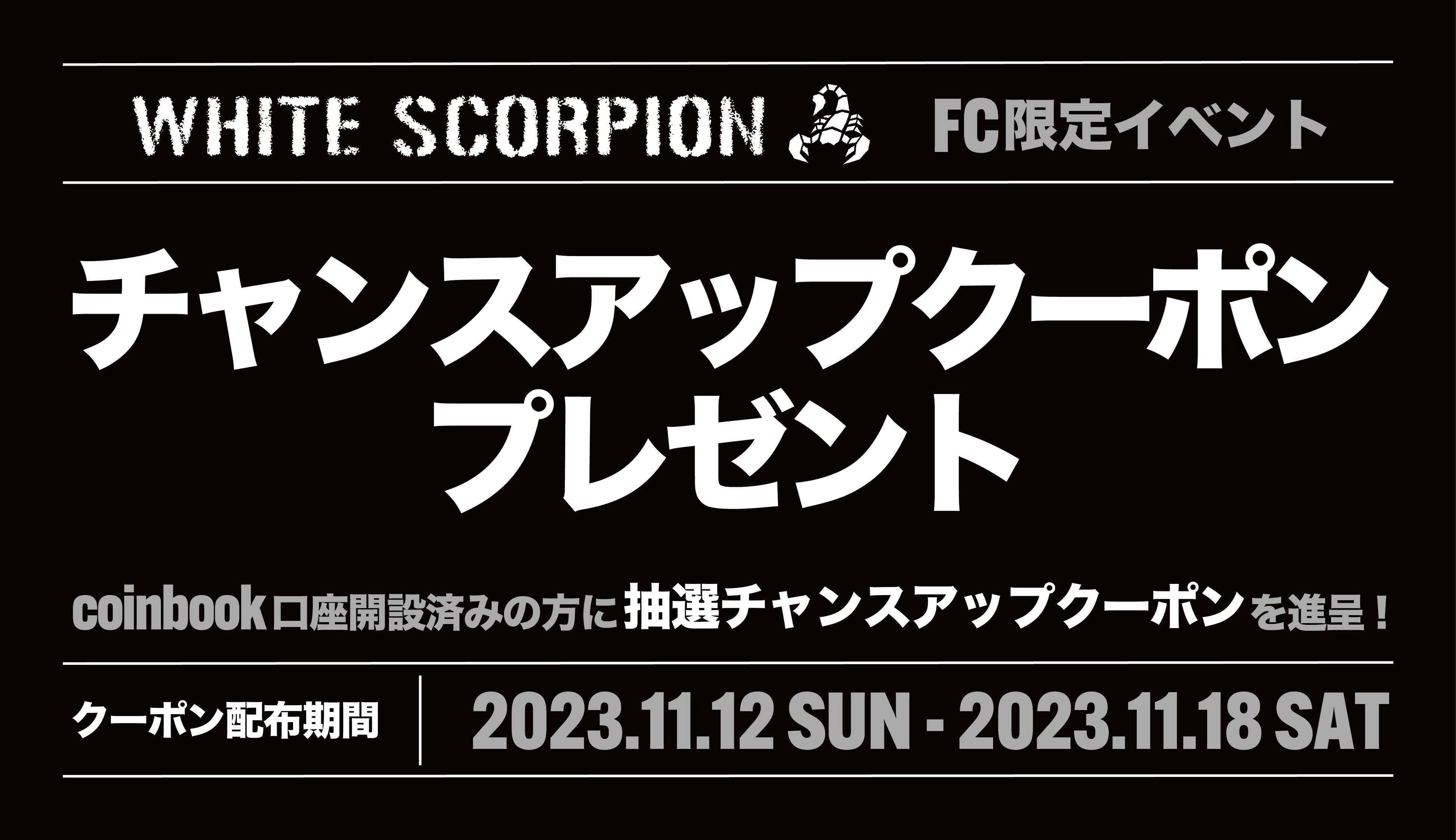 「WHITE SCORPION FC限定イベントsupported by coinbook」の開催と優待コード配布のお知らせ