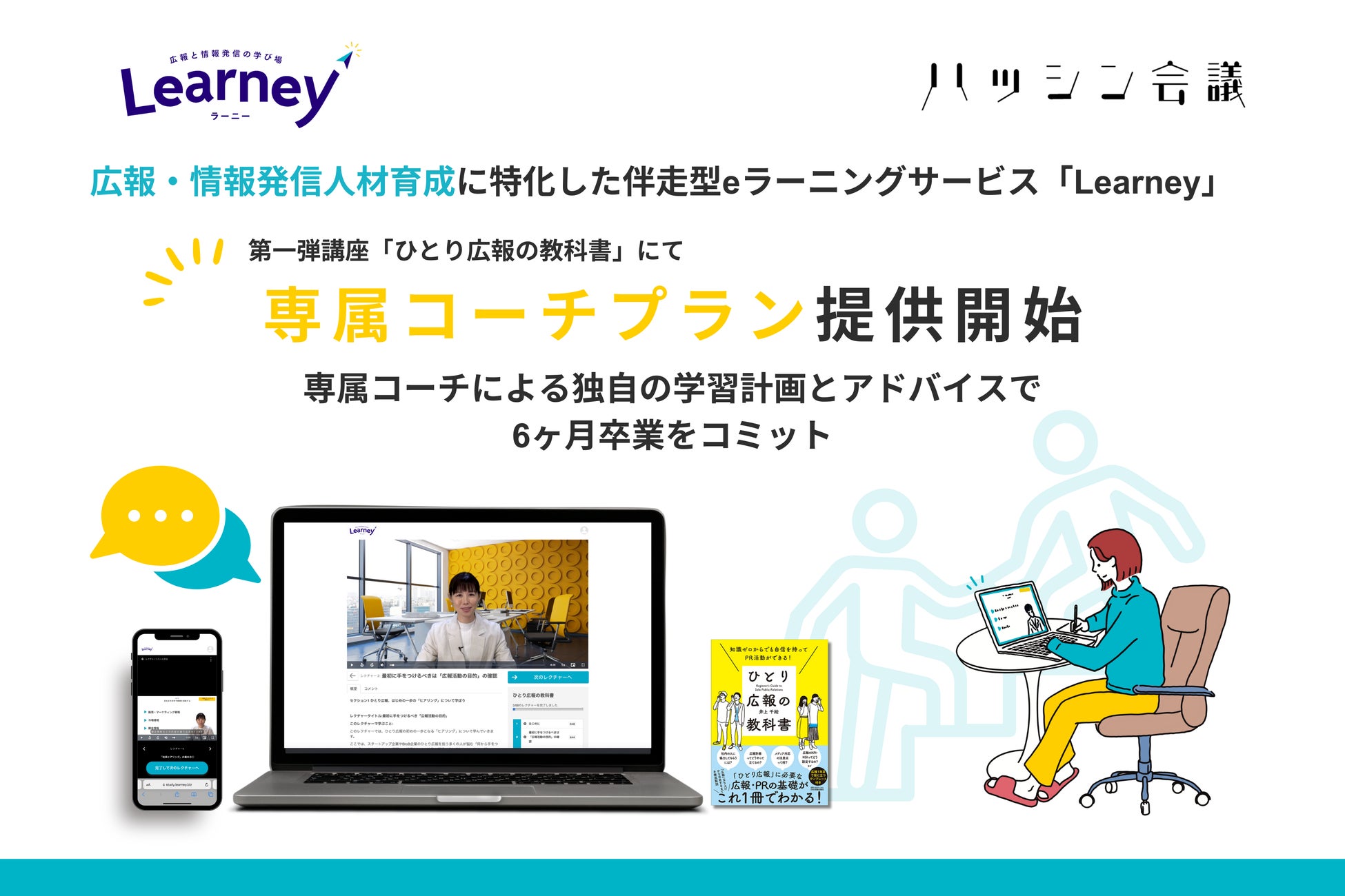 株式会社ハッシン会議(本社:東京都港区、代表取締役:井上千絵)は、広報・情報発信人材育成に特化した伴走型eラーニングサービス『Learney(ラーニー)』において、新たに「専属コーチプラン」の提供を開始します。