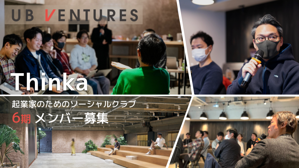 経営・事業経験に基づく成長支援に強みを持つUB Ventures、シード起業家のためのソーシャルクラブ「Thinka」6期メンバーの募集を開始