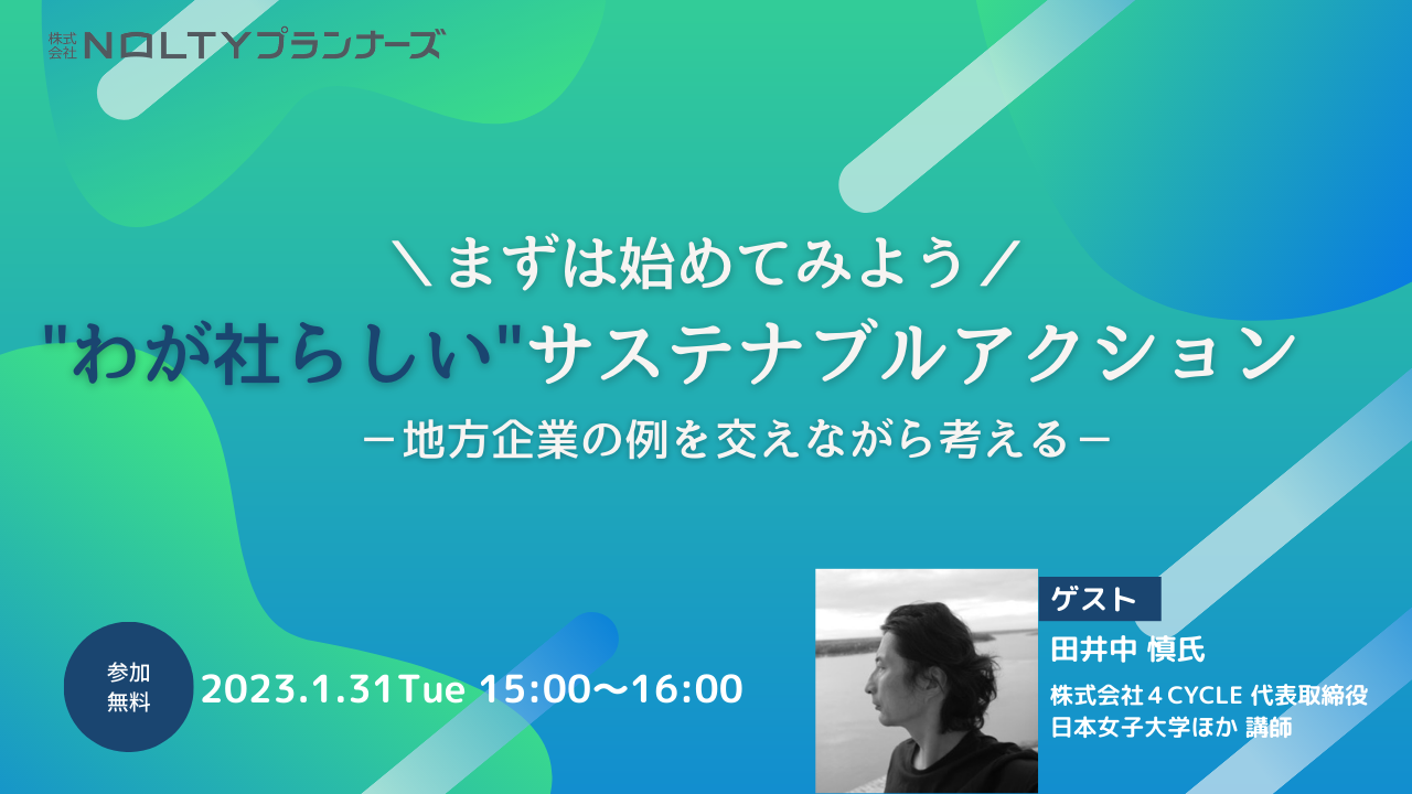 【無料ウェビナー】まずは始めてみよう"わが社らしい"サステナブルアクション ~地方企業の事例を交えながら考える~ |1月31日(火) 15:00-16:00