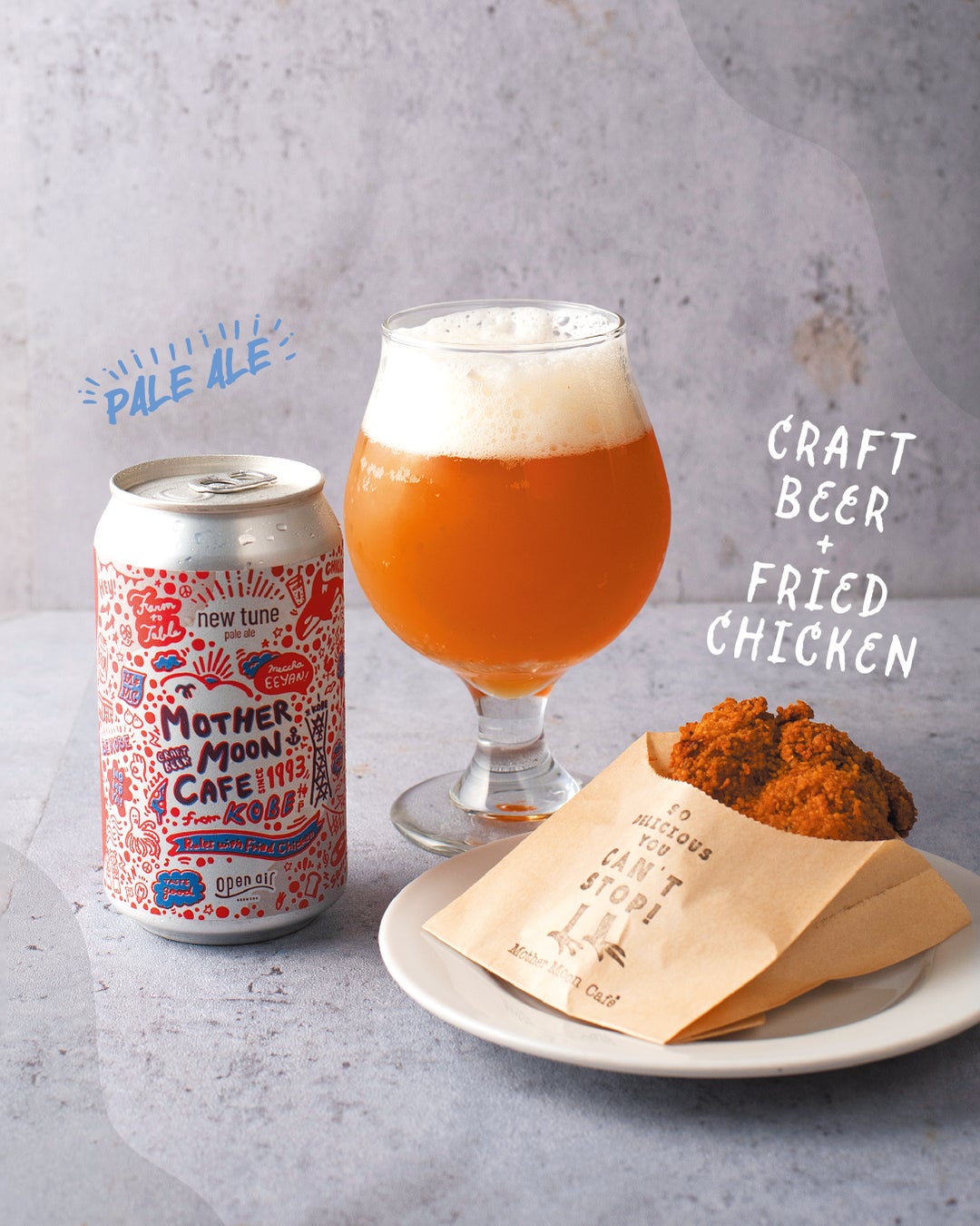 本企画では、マザームーンカフェ自慢の「バターミルクフライドチキン」と最高の相性を追求し、湊山醸造所が誇る「new tune」を、マザームーンカフェ限定オリジナルラベルで販売します。ラベルには神戸を表す様々なモチーフがデザインされています。