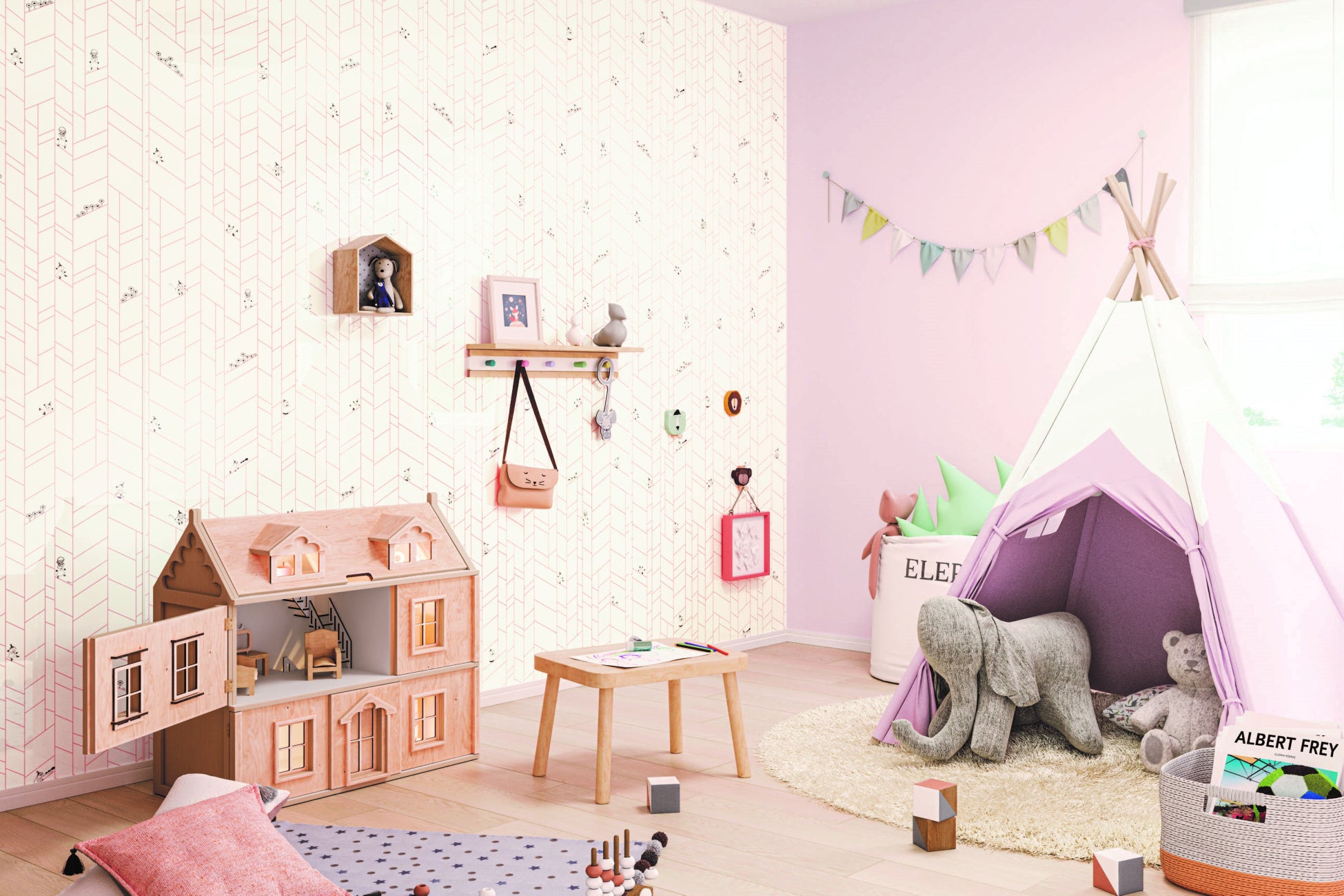 無邪気なリトルミイがお部屋で遊ぶ。柔らかなピンクで優しい気持ちに。