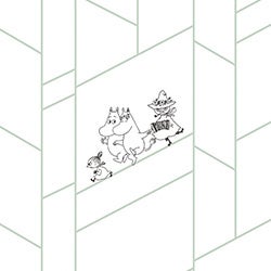 ぶどう畑で過ごすムーミンたち。優しいピンクベージュが、穏やかな空間を演出。