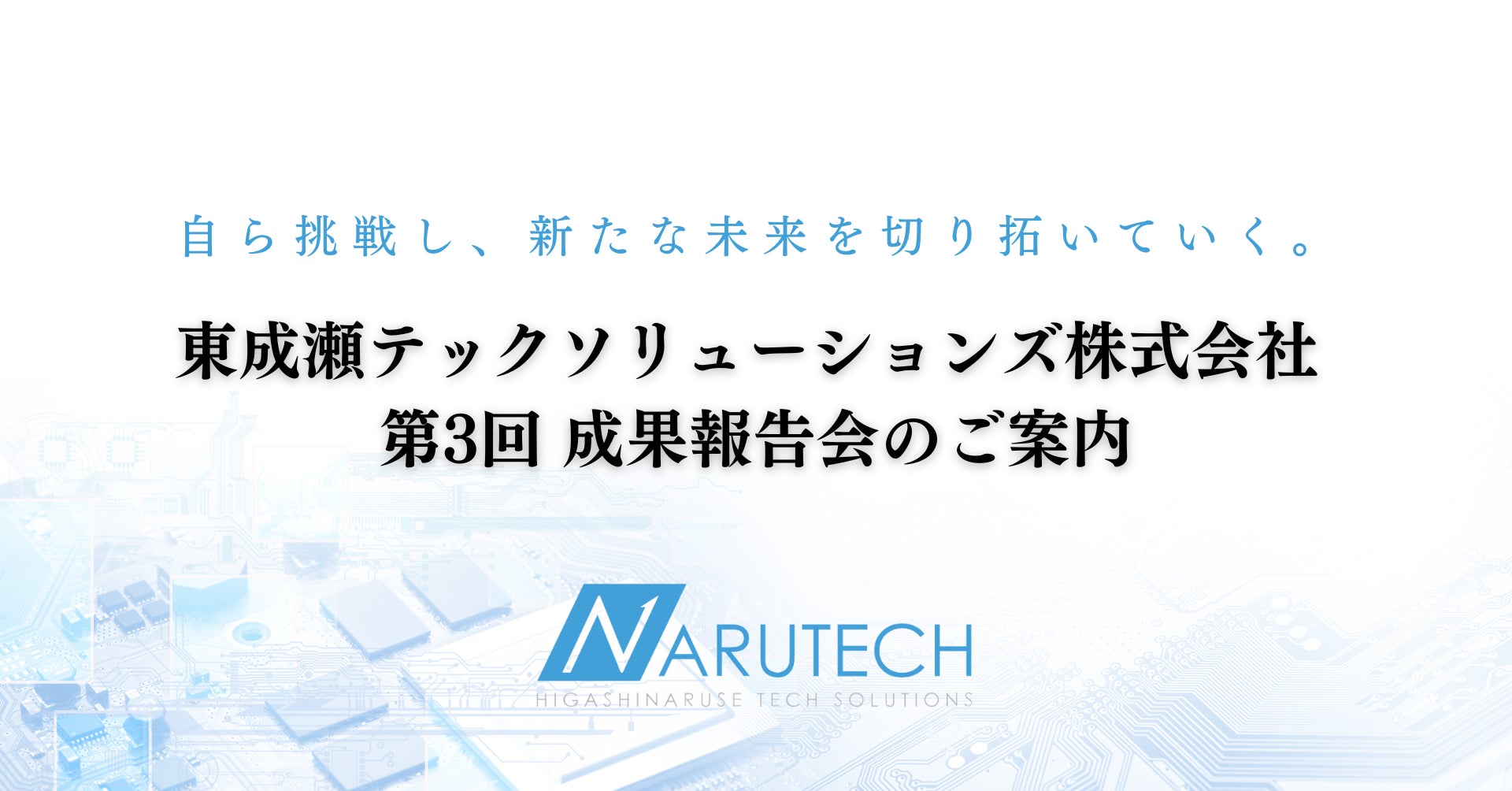 東成瀬テックソリューションズ株式会社(本社:秋田県雄勝郡東成瀬村、代表取締役社長 近藤純光、通称「なるテック」)は、2023年第3回なるテック成果報告会を開催いたします。