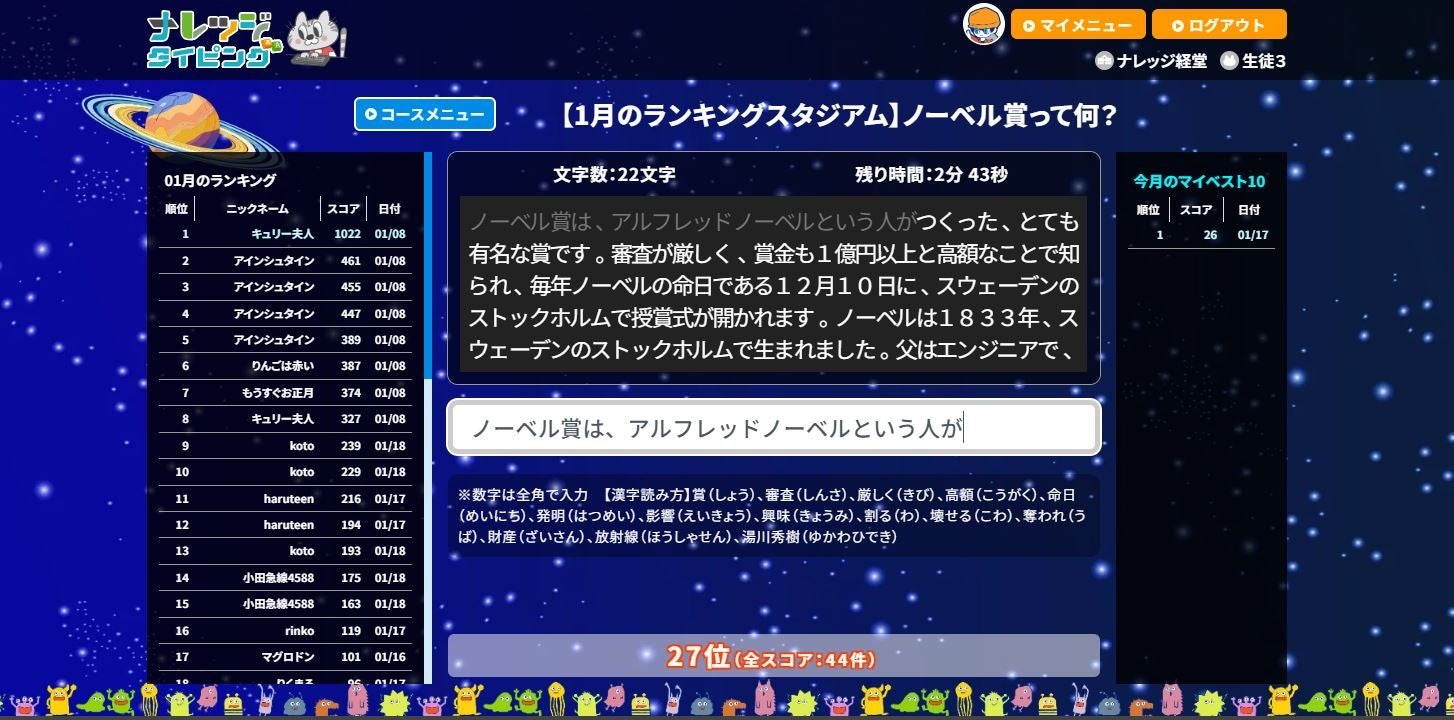 【ナレッジタイピング】school版に新機能「ランキングスタジアム」登場!