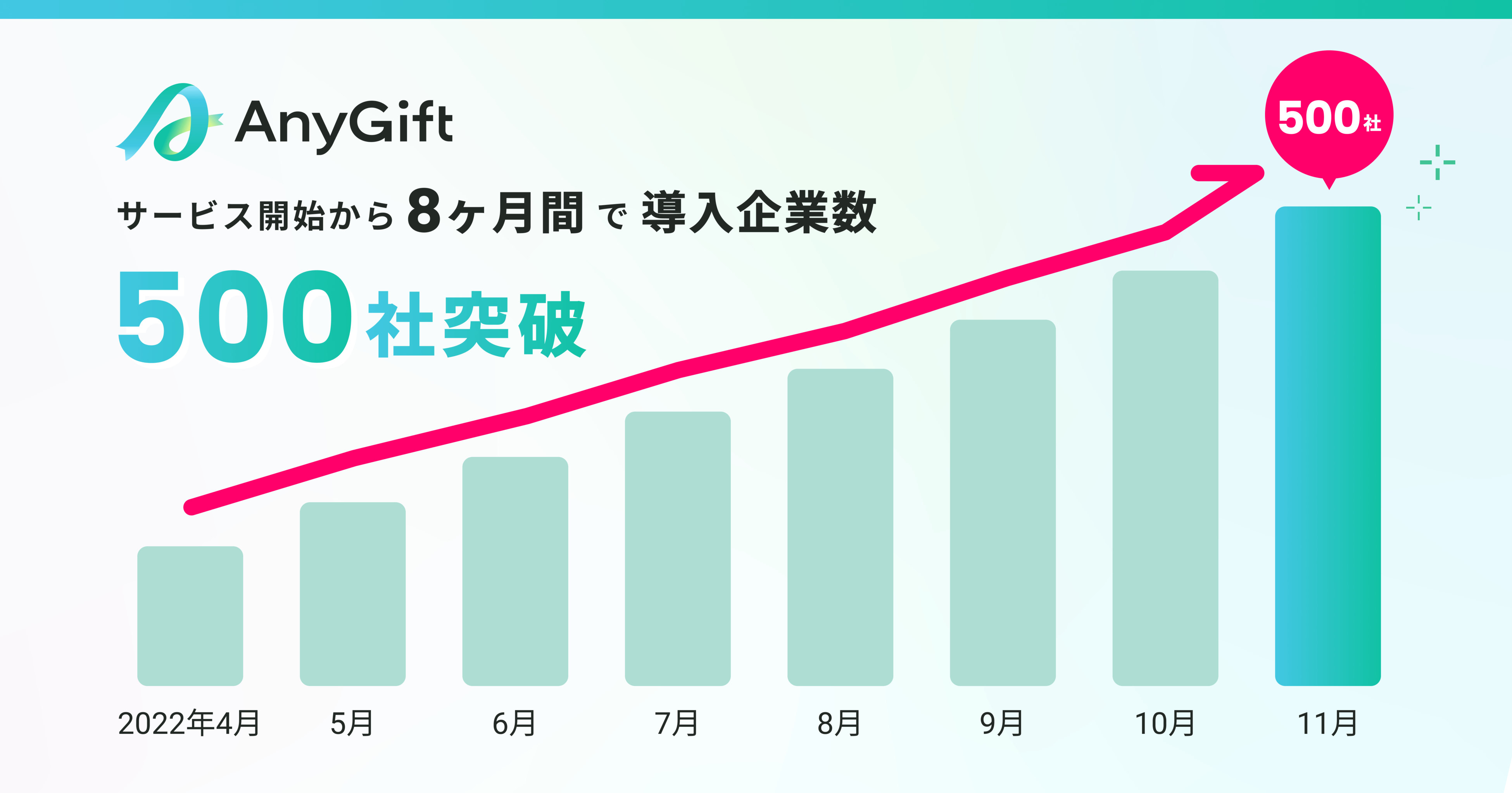 すでにサービス開始から8ヶ月間で、導入企業数は500社を突破し、eギフトの総流通額は710%以上成長。さらに拡大を続けています。