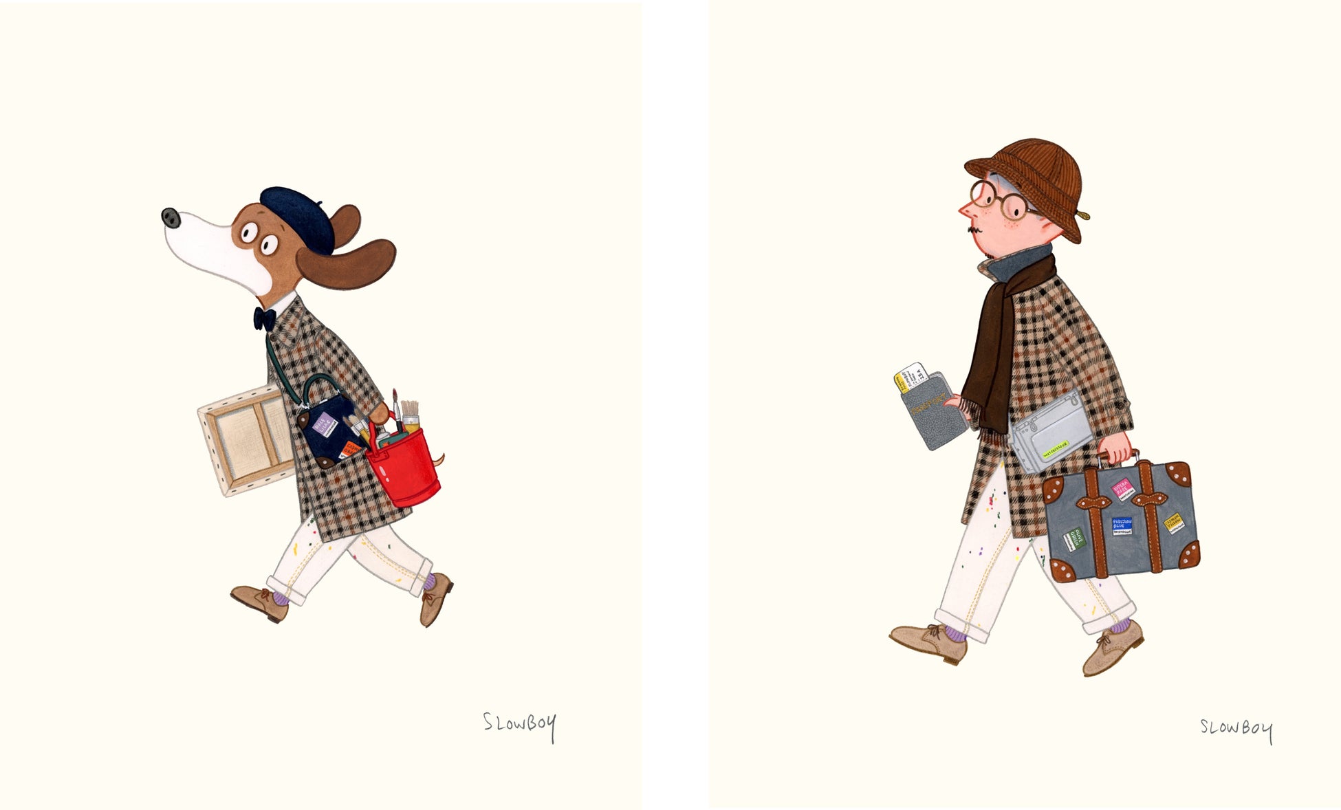 イラストとデザインを融合させたこのコラボコレクションでは、旅するアーティストことMr. Slowboy本人と、その仲間であり、DAKS×Mr Slowboyの愛すべきマスコットであるダックスフンドの「マックス」の2人の物語を描いています。