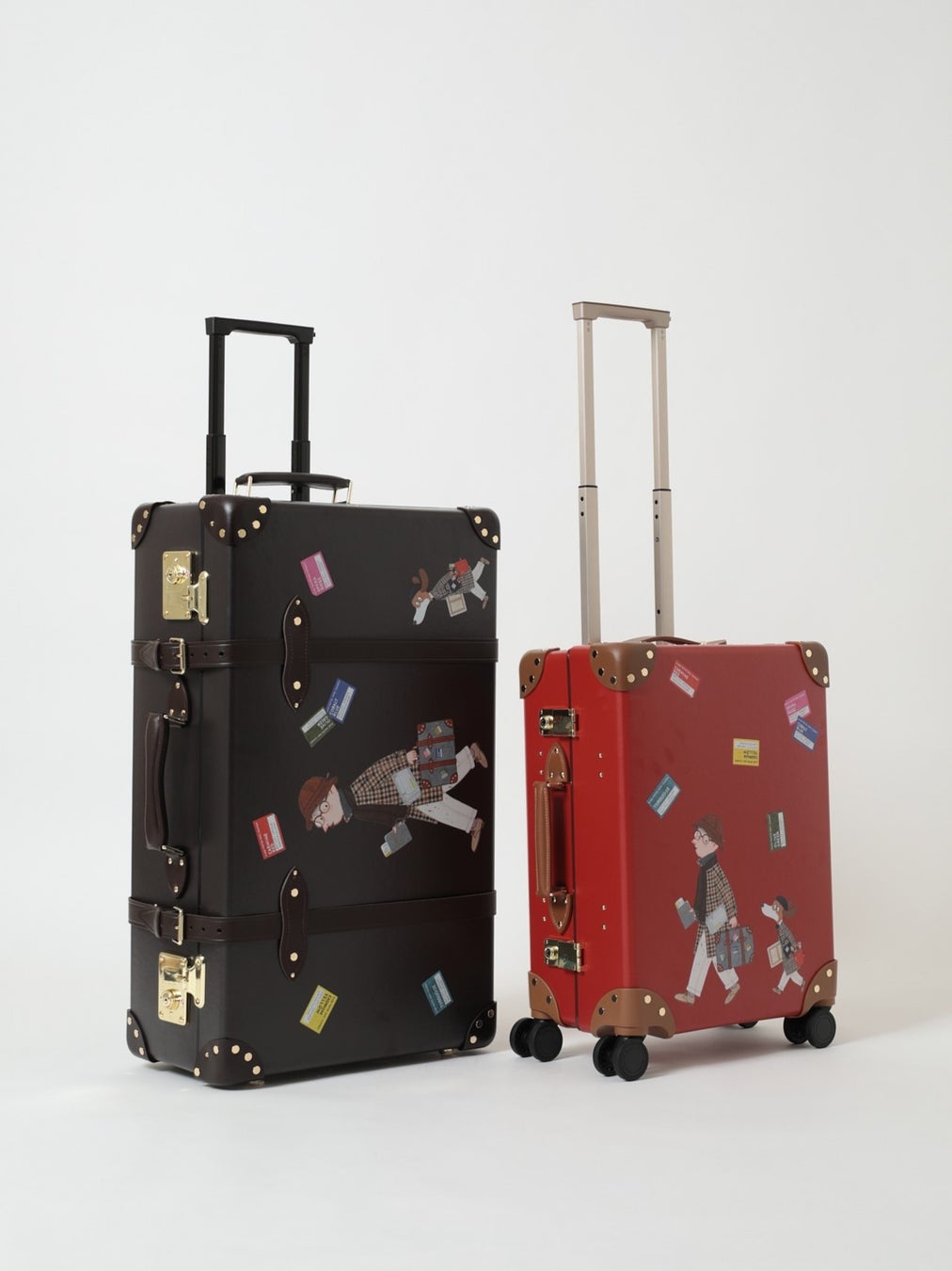 GLOBE-TROTTERの象徴である、軽量でありながら驚くほど頑丈な素材として知られるヴァルカン・ファイバーを使用。今回のコラボレーションのために特別に配色され、2人のイラストが描かれたスーツケースは、全て英国でハンドメイドされています。