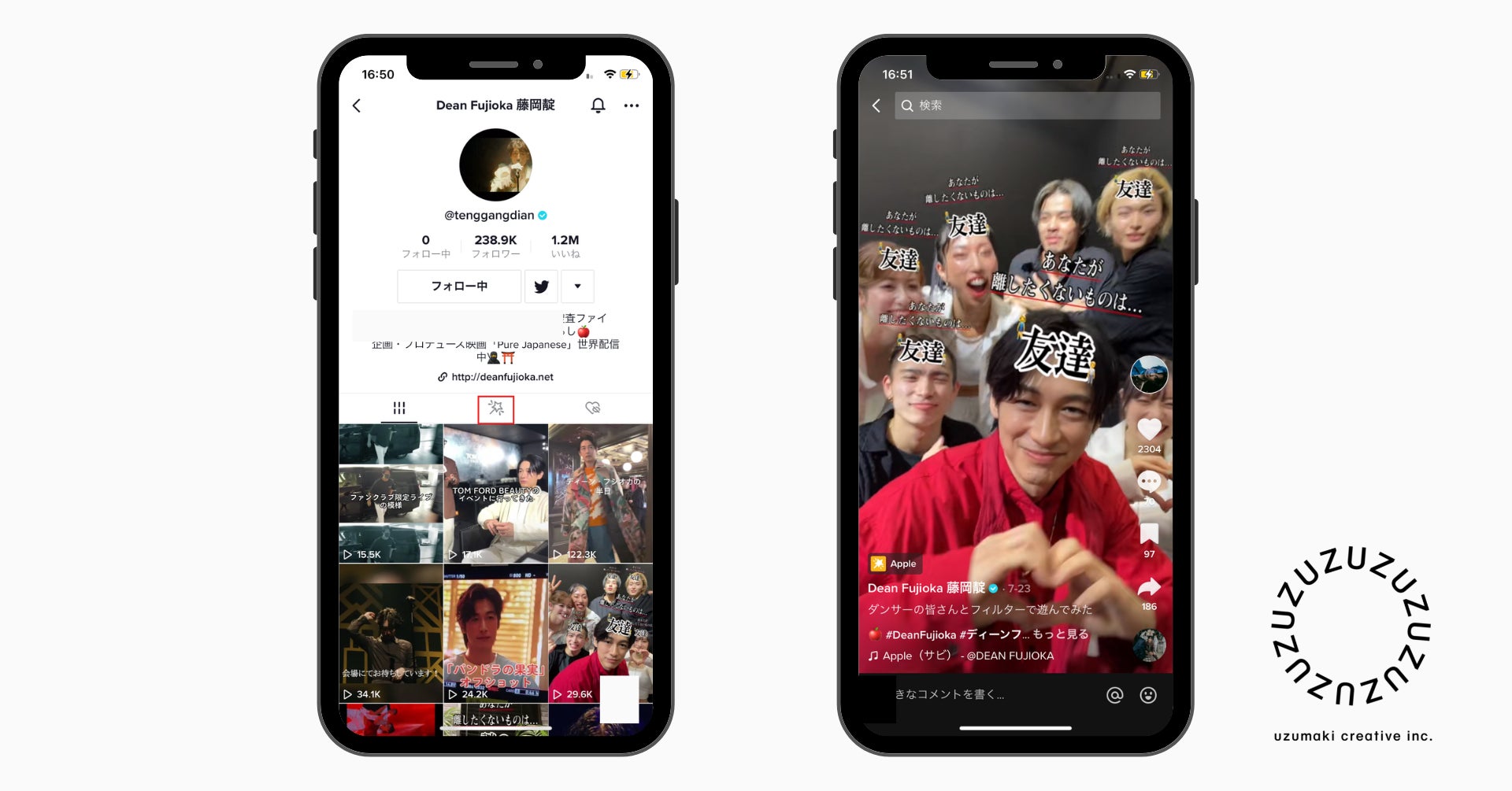 Z世代向けSNSマーケティング事業を展開するuzumaki creative、DEAN FUJIOKA 「Apple」のTikTok ARフィルターをリリース