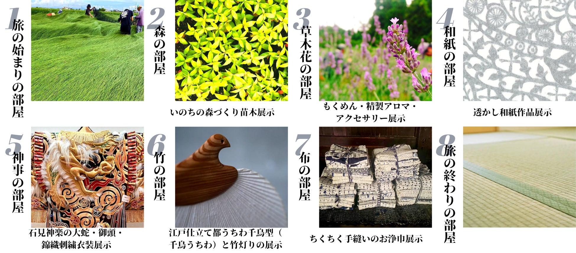 ③8つの部屋それぞれにコンセプトがあり、五感で手仕事に触れる旅ができる