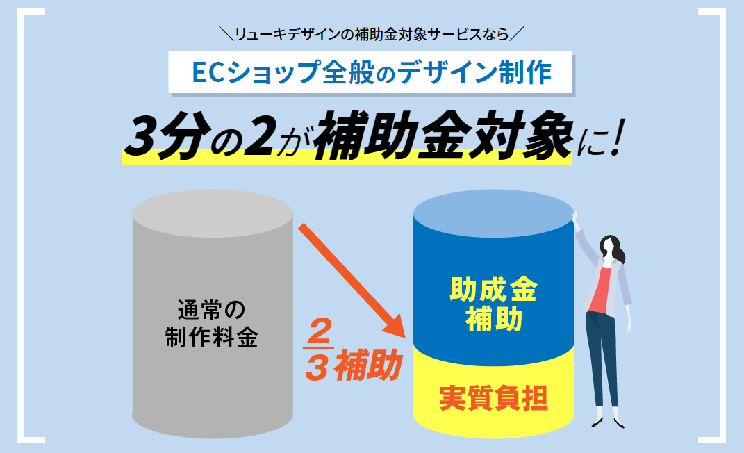 デザイン制作はもちろん、モデル撮影費用や年間のサーバー費用なども補助金利用が可能です