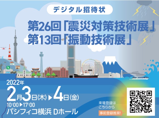 2022年2月3日(木)~4日(金)の2日間、横浜国際平和会議場(パシフィコ横浜Dホール)にて、第26回「震災対策技術展」 -自然災害対策技術展- /第13回「振動技術展」が開催されます。