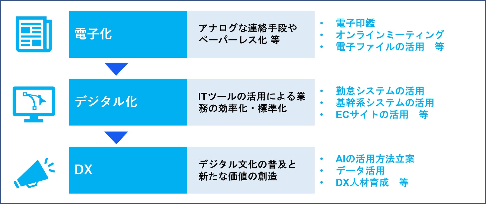 そんな不安から脱却し、これからの時代に追従していくデジタルの仕組みを統合設計&伴走支援します。初期段階から応用段階まで、企業のデジタル化ステージを、時代の潮流と照らし合わせてアセスメントさせて頂き、その後の発展プランを考えるところからスタートさせて頂きます。