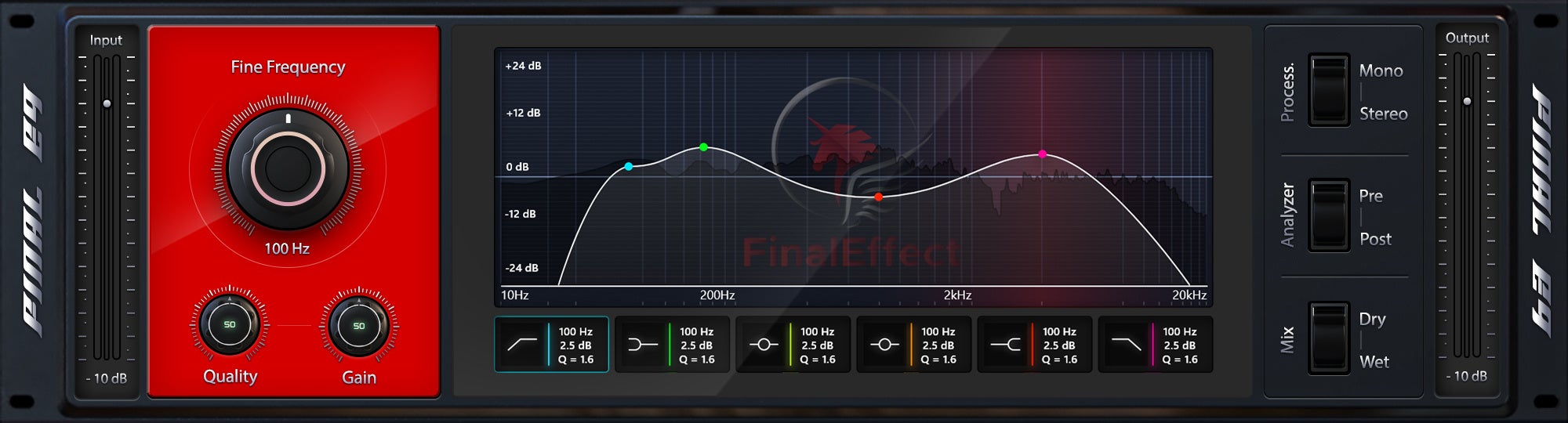 6バンドのEQポイントにより自由自在な操作を可能とした、音楽的なサウンドを実現するフル・パラメトリック・イコライザーとして、FinalEQは新時代を定義します。世界最先端のサウンドをFinaleffect・FinalEQを使用して即座に世界屈指のサウンドをユーザーが手に入れることが可能となります。