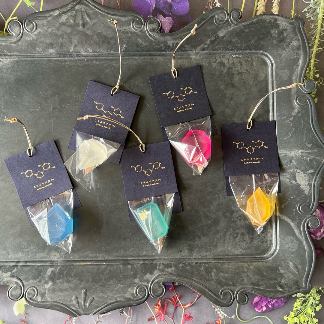 イベントのテーマ「九州の夏を楽しむ」に合わせて、九州素材を贅沢に使い、そしてデザインはこうぶつヲカシの中でも最も手が凝っていて沢山作れないため、数量限定なリアルな鉱石を模したもの。