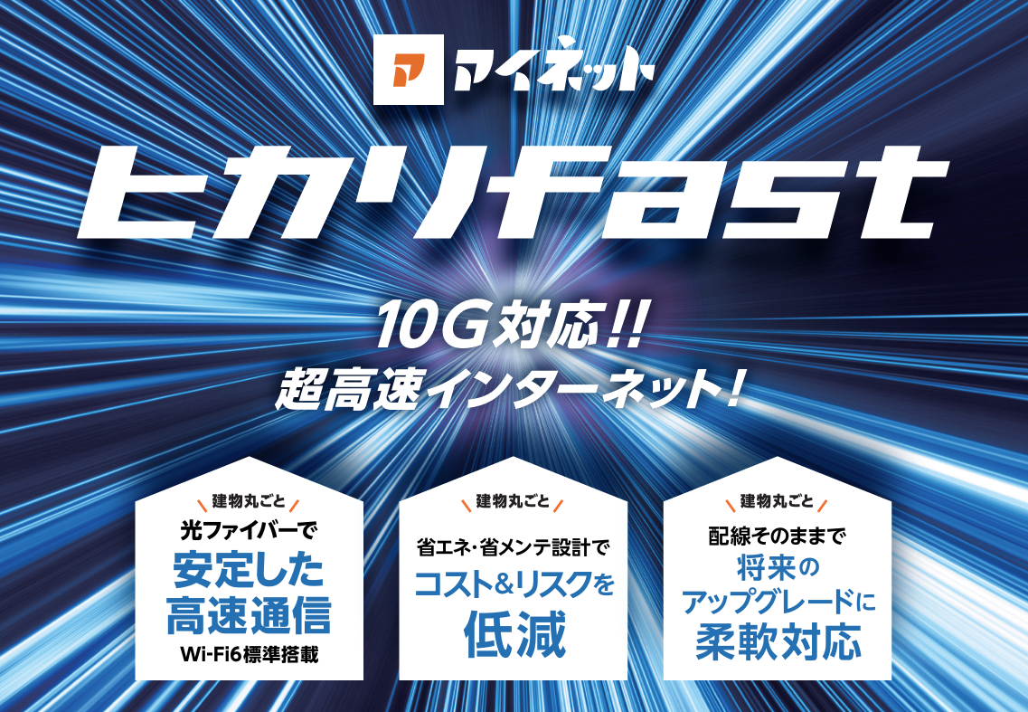 アイコネクトは、「アイネット ヒカリfast」を既存・新築問わず積極展開し、賃貸物件の通信インフラを次世代レベルに引き上げてまいります。