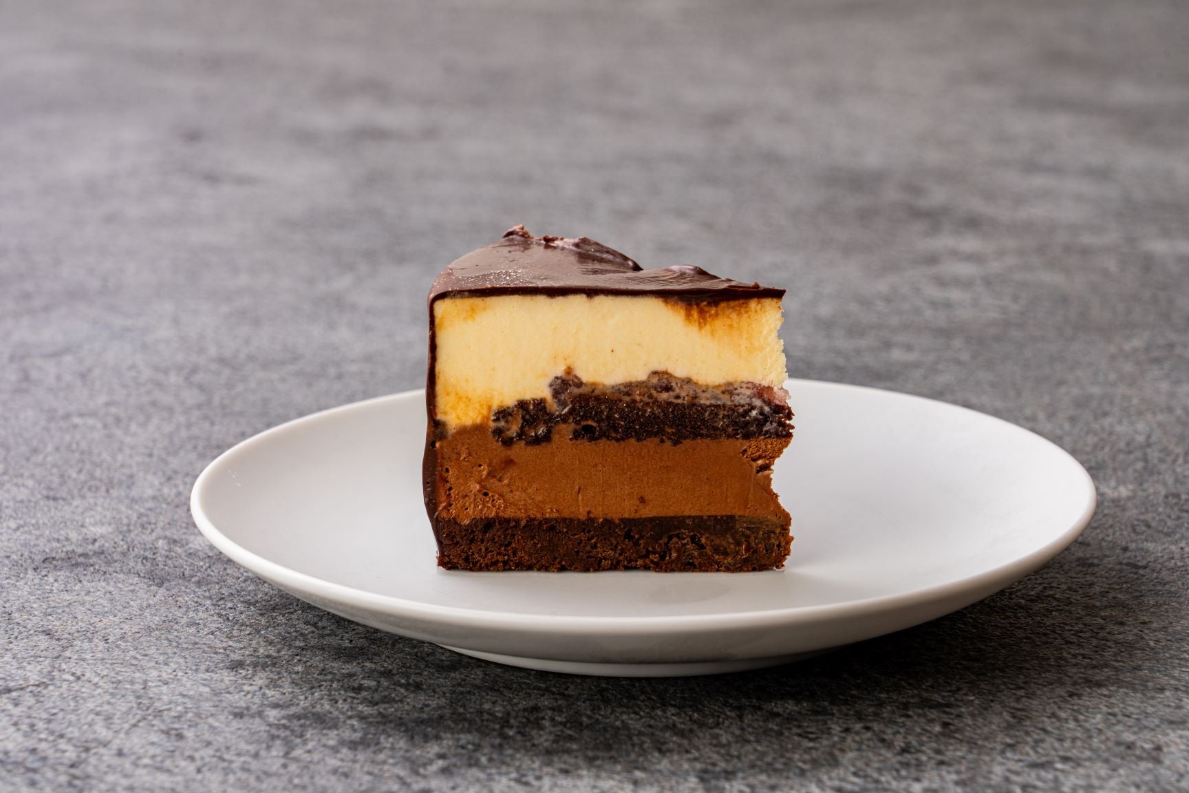 ザッハトルテ風のしっとりとしたチョコ生地が土台を支え、全体のバランスを整えたチョコレート好きのための特別な一品。