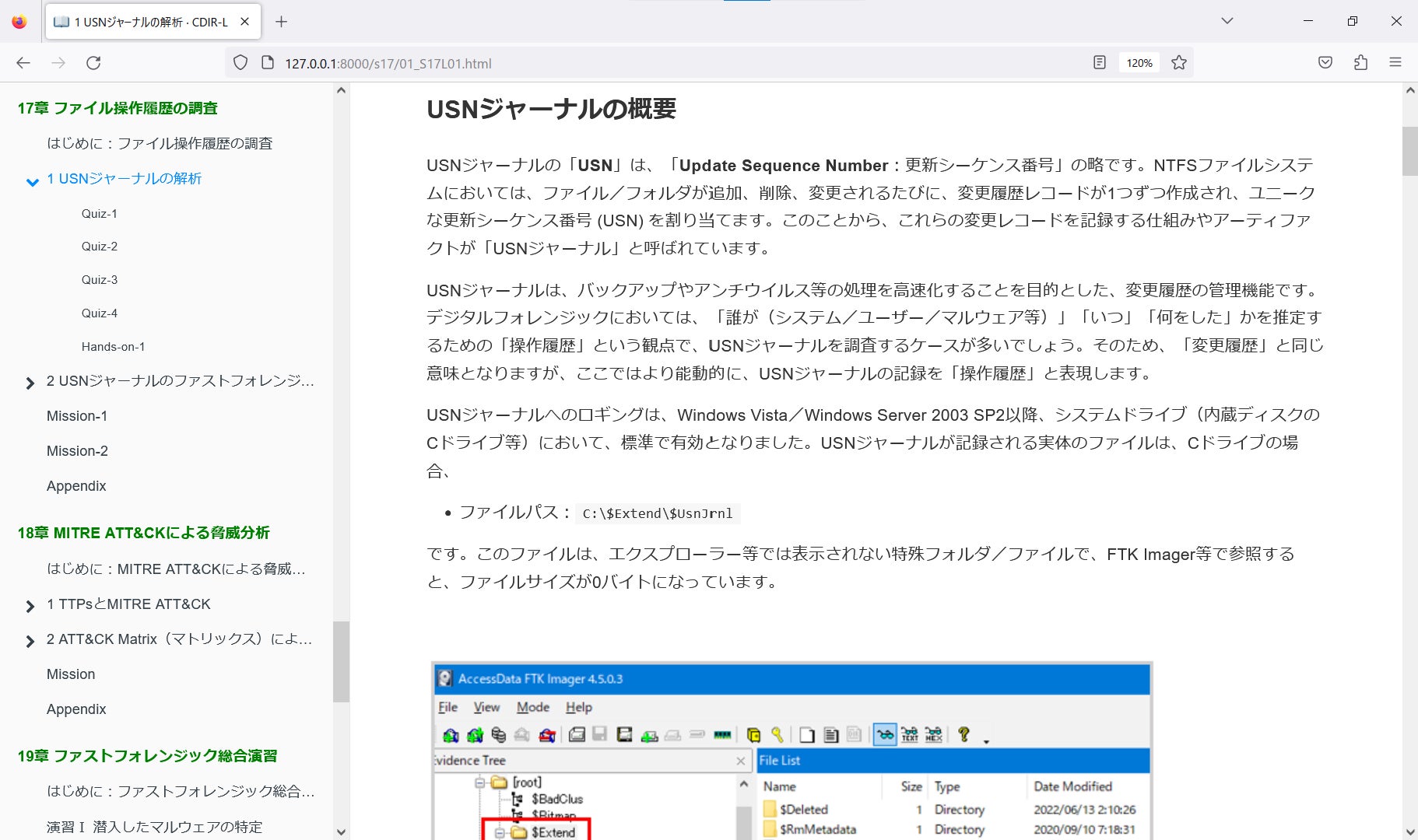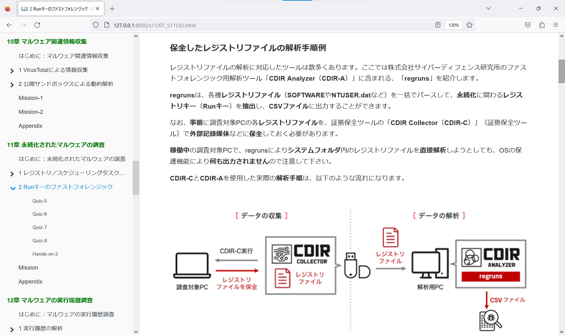 CDIR-LはWebBookとしてパッケージされた全19章の学習テキストと、イベントログやプリフェッチなどハンズオン演習用のデータセットから構成されています。