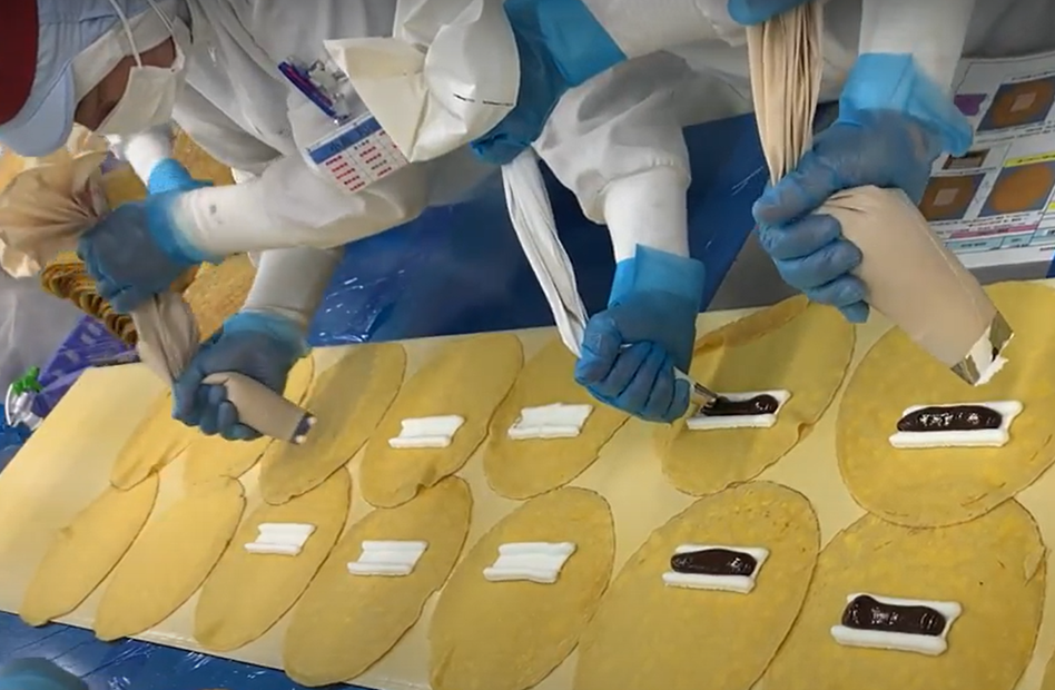■粉の配分と温度調整で見た目もおいしい“キリン柄”に