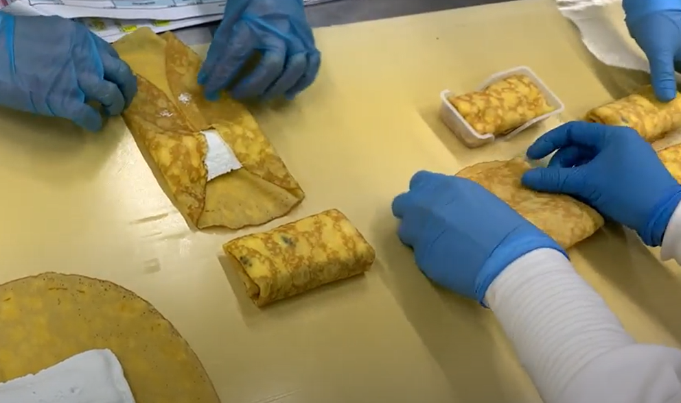 従来品は、素材をふんわりと包み込んだ正方形の形状だったのに対し、本商品はやさしい包み込み方はそのままに、より食べやすさを追求し、スティック状にしました。スティック状のクレープが入った容器についても折れ曲がる仕様となっており、より食べやすさを追求しております。