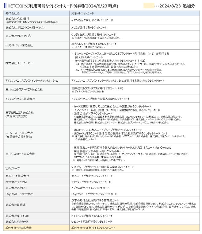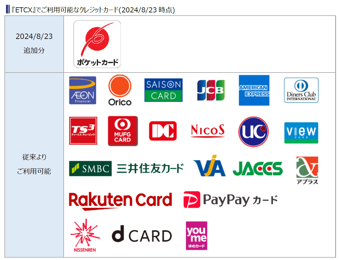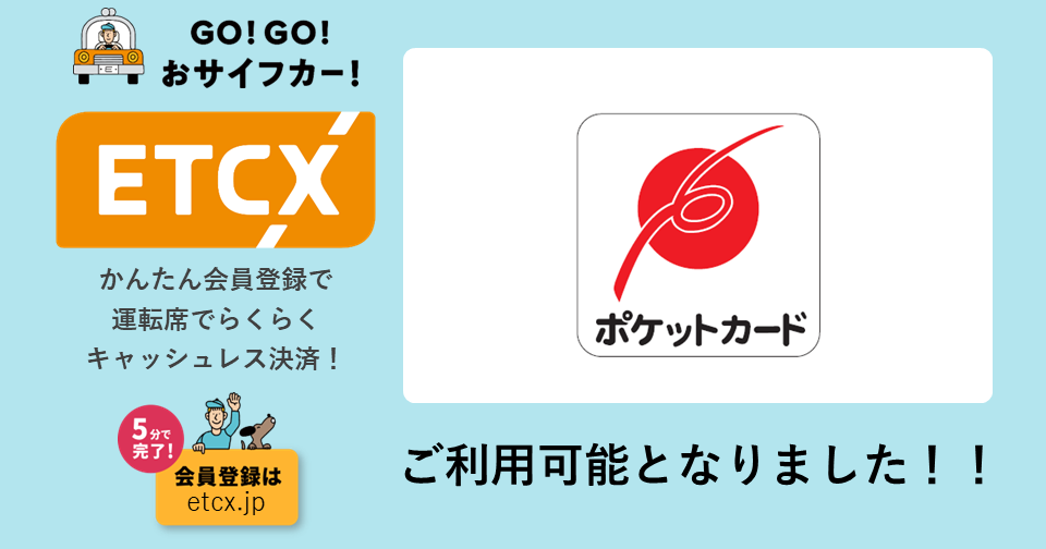 ETCが街なかで利用できる『ETCX』サービスで、「ポケットカード」がご利用可能になりました