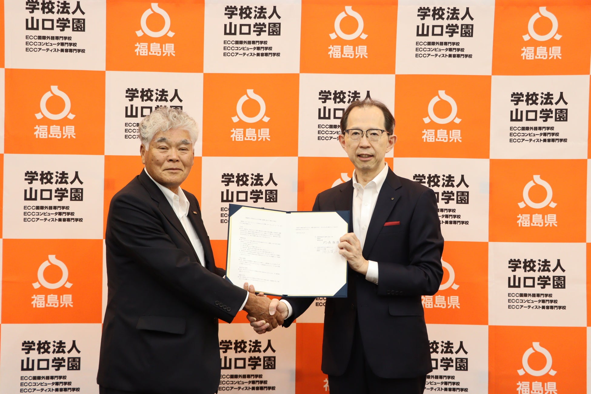 出席者:福島県 内堀 雅雄知事、ECC国際外語専門学校 大谷内 圭学校長