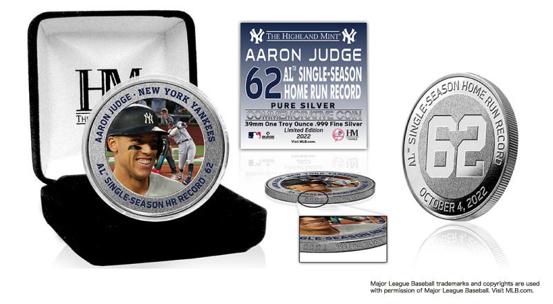 商品名:Aaron Judge AL Single Season Home Run Record 62 シルバーコイン
