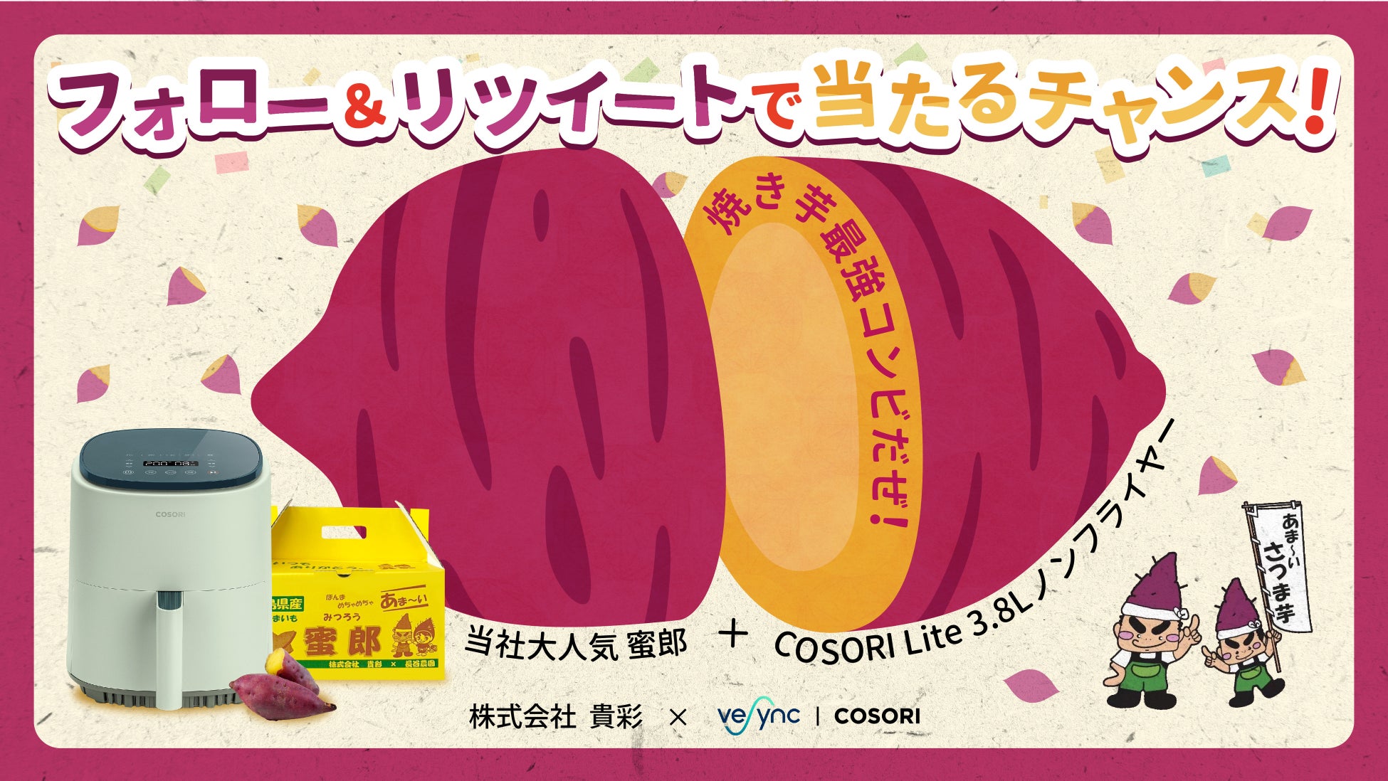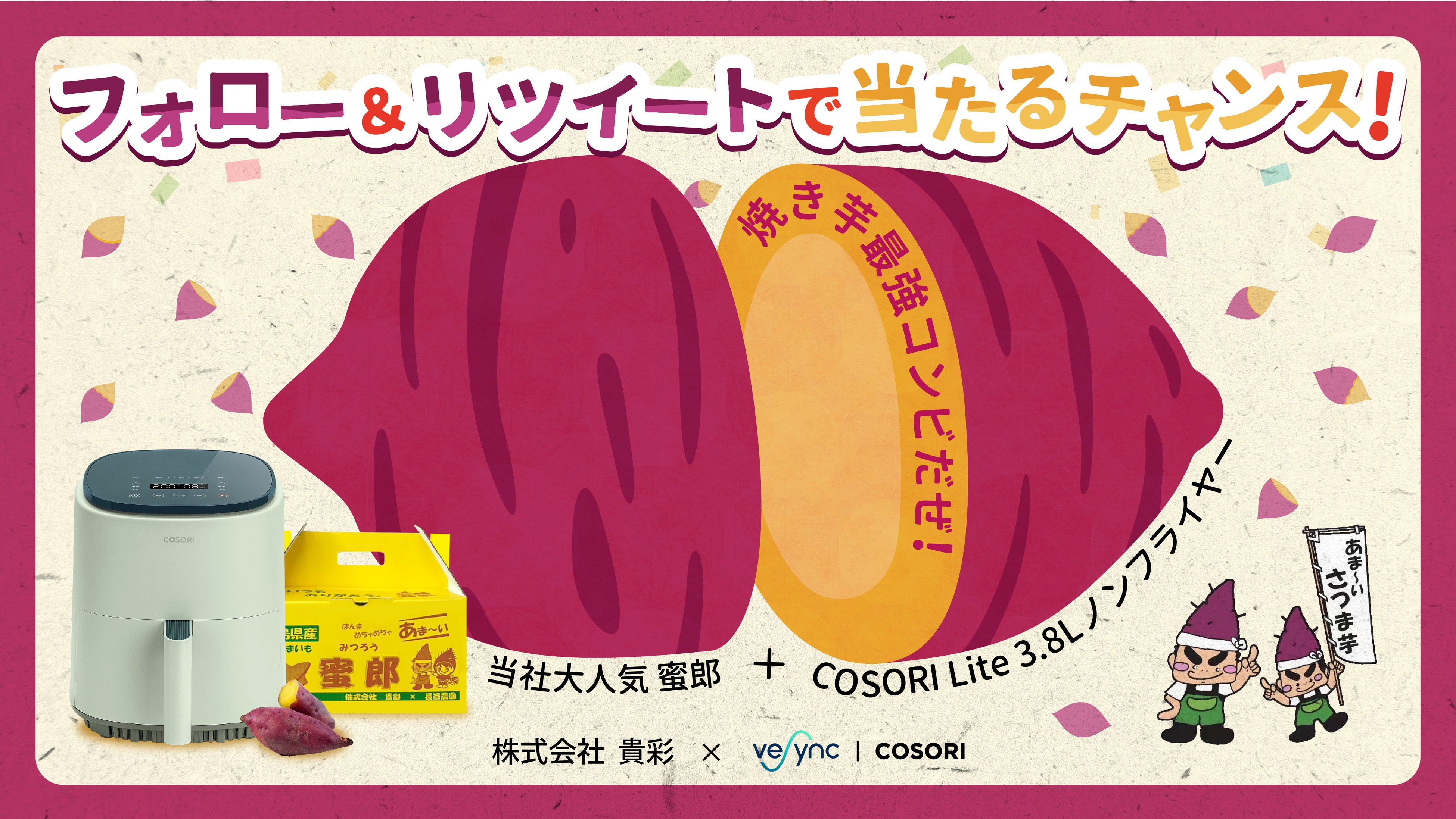 COSORI Lite 3.8L ノンフライヤー1台と焼き芋蜜郎3㎏を1名様にプレゼント
