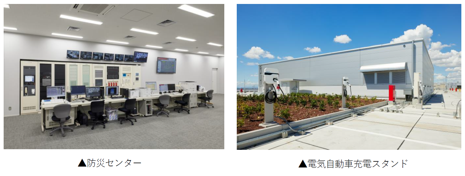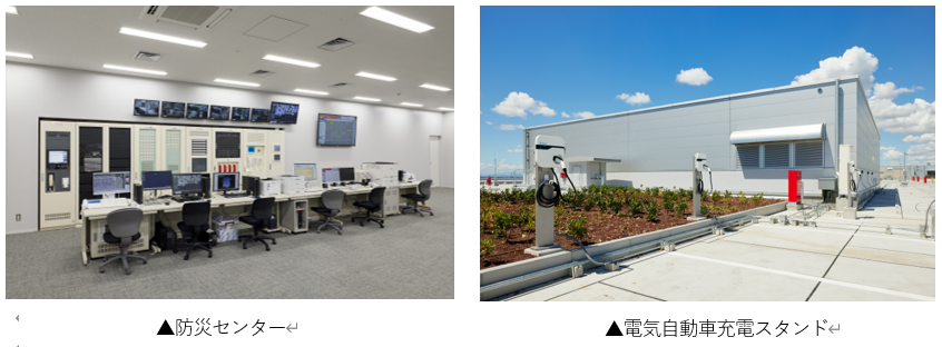 免震構造による地震対策、非常用発電機による停電対策や津波・大雨・台風対策、24時間365日の警備員・設備管理員常駐に加え、環境への配慮として壁面緑化や電気自動車充電スタンドを備えており、万一の際の事業継続性や将来の環境面に配慮した持続可能な物流拠点を構築出来ます。併せて、物流ビルA棟は国土交通省が定めた「建築物の省エネ性能表示のガイドライン」に基づく第三者認証制度「BELS」にて★5を取得しており、環境への配慮を推進しております。