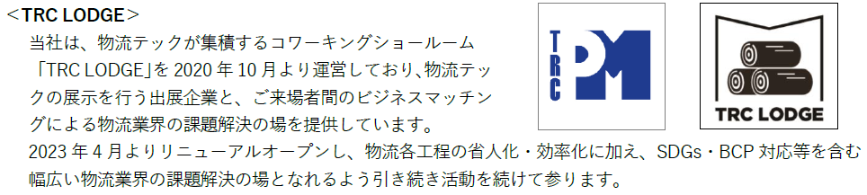 当社は、物流テックが集積するコワーキングショールーム「TRC LODGE」を2020年10月より運営しており、物流テックの展示を行う出展企業と、ご来場者間のビジネスマッチングによる物流業界の課題解決の場を提供しています。