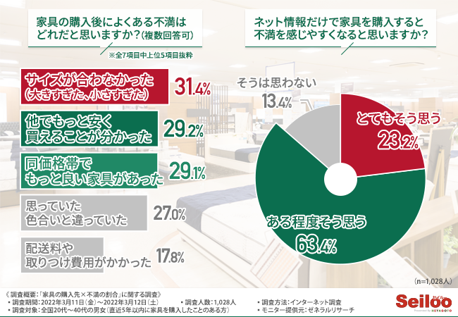 - 家具購入後に感じやすい不満とは?ネット情報だけで購入すると、より不満を感じやすい?