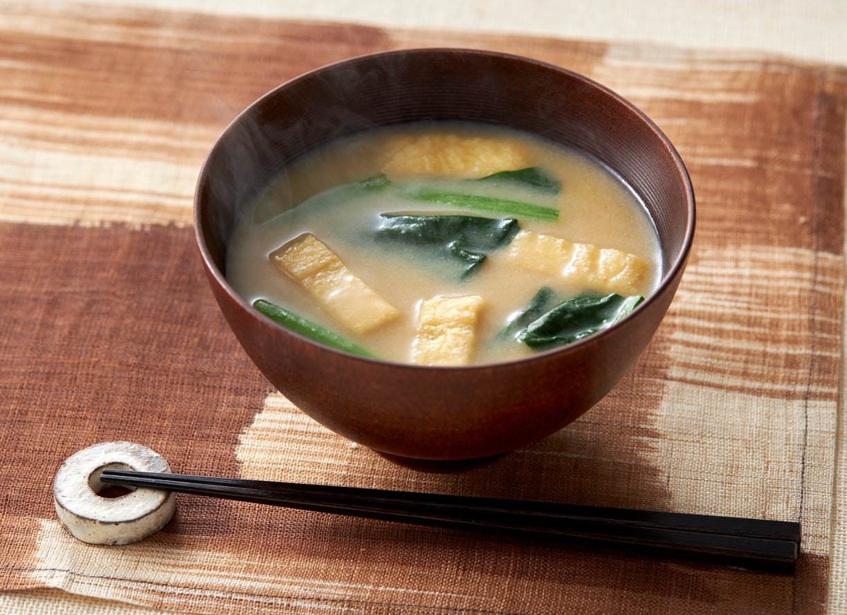 調理例:小松菜と油揚げの味噌汁
