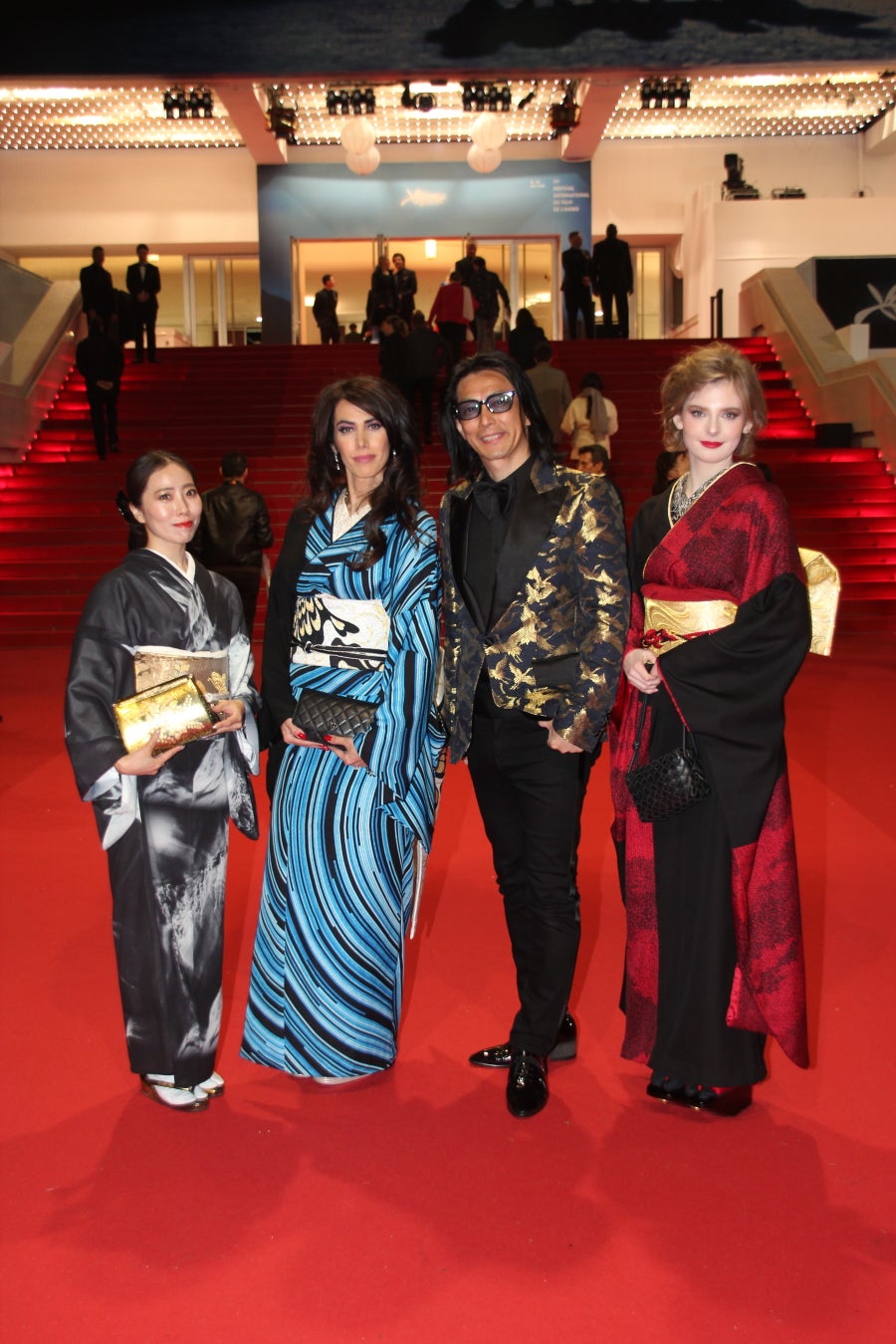 【カンヌ国際映画祭】レッドカーペットにMUNETAKA YOKOYAMAの着物ドレスを着たエラ・フレイヤさんら登場!世界から注目を浴びる!