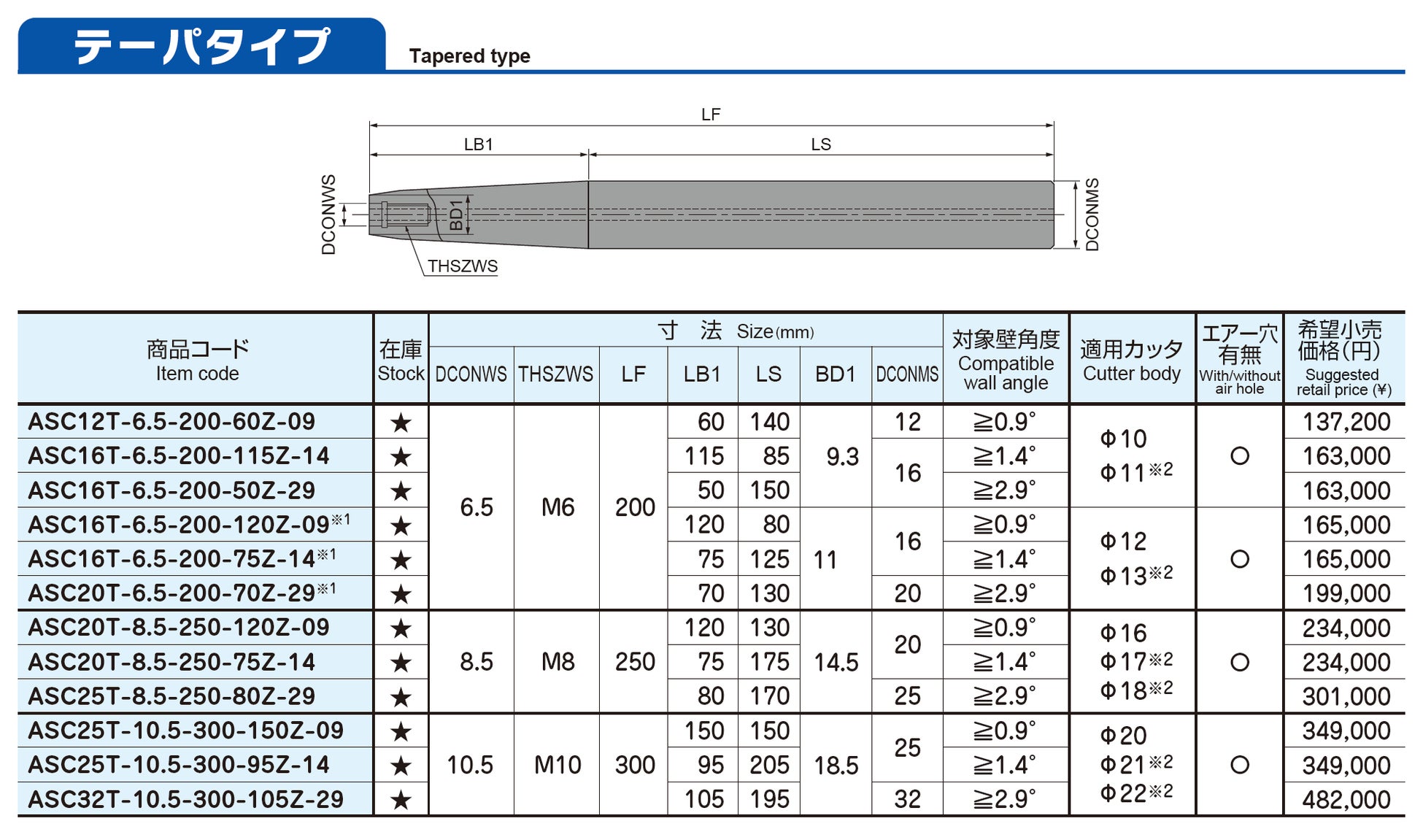テーパタイプ:適用ヘッド外径Φ10~Φ22(12アイテム)