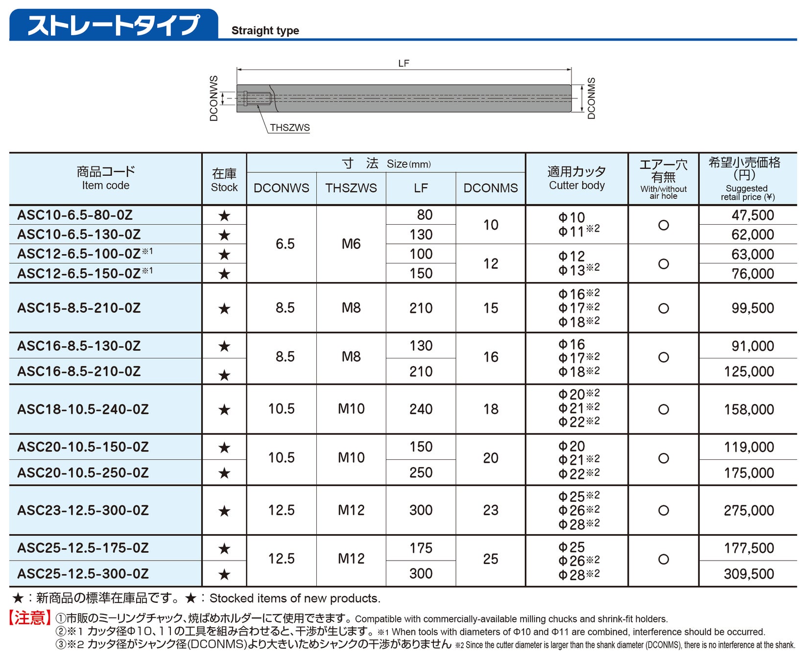 ストレートタイプ:適用ヘッド外径Φ10~Φ25(13アイテム)