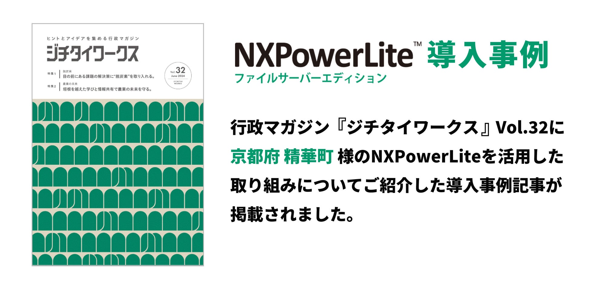 行政マガジン『ジチタイワークス』で京都府 精華町 様のデータ圧縮ソフト「NXPowerLite」を活用した取り組みがご紹介されました。