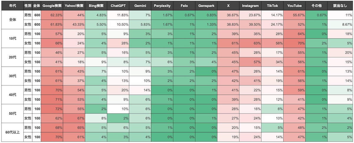 Google検索の利用率は依然トップ(62.1%)も、SNS・動画・生成AIとの併用が進む