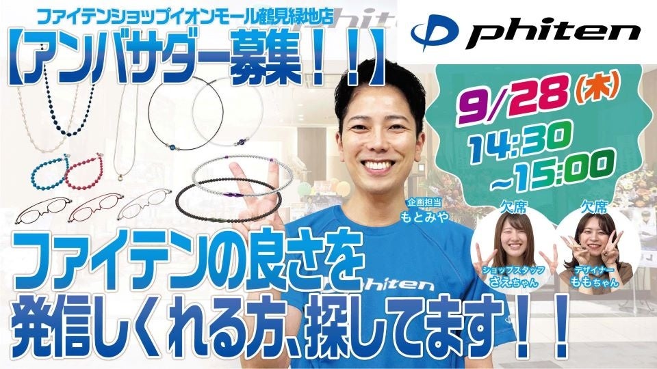 ファイテンの良さを発信してくれるアンバサダーになってくれる方を募集します!スポーツが好きな方、健康に興味のある方、ライブ配信を通じて一緒にファイテンの魅力を発信していきましょう!