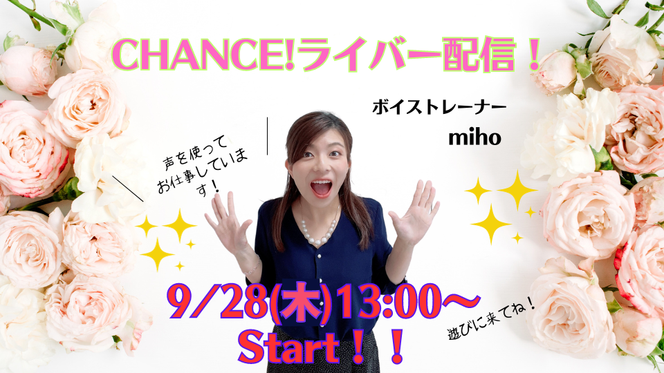 CHANCE!のライブ配信での活躍だけでなく、ボイストレーナーとして音楽・ビジネス・医療の現場でも活動しています!声を武器にお仕事されるmihoさんならではのトークで、MCとして企業様や商品の魅力を120%引き出すライブ配信が期待できます。