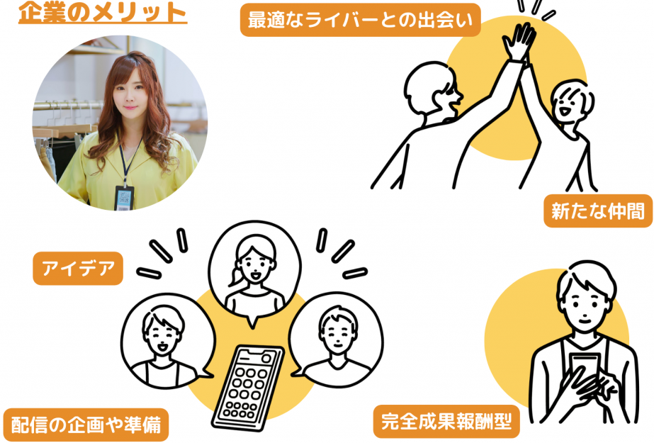 ライバー×企業のマッチングで、互いの得意を活かしたライブ配信事業につながる